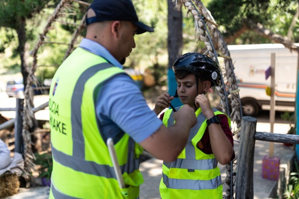 Larg vapës dhe zhurmës së qytetit, bashkë me Policinë Bashkiake, simuluam situata trafiku për të mësuar sjelljet e duhura në rrugë si këmbësorë dhe si drejtues mjeti.